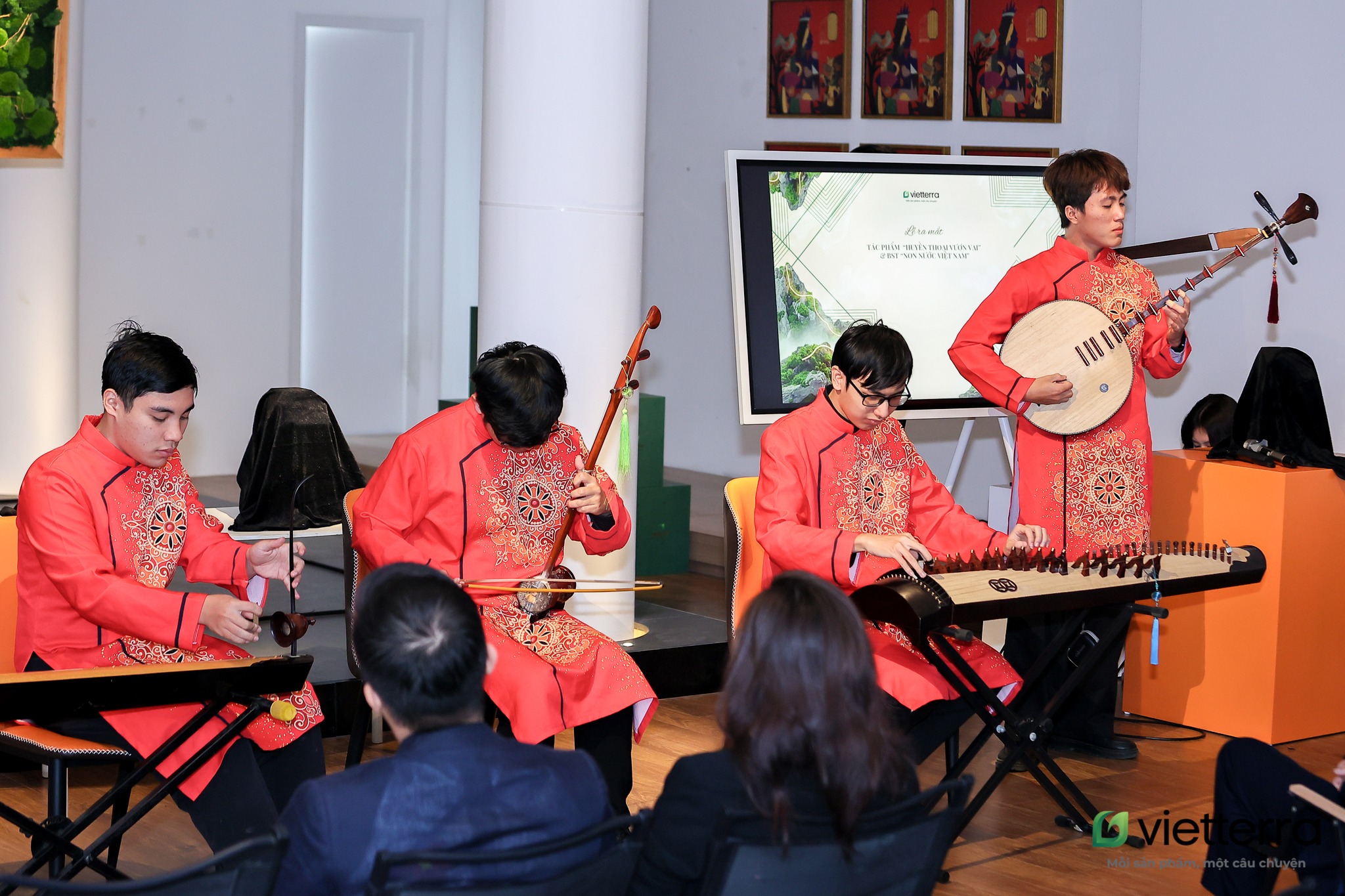 Không gian sự kiện càng trở nên thăng hoa với phần trình diễn văn nghệ đặc sắc từ nhóm nhạc FTIC. Liên khúc được thể hiện bằng các loại nhạc cụ dân tộc truyền thống, mang đến những giai điệu vừa hào hùng, vừa sâu lắng.